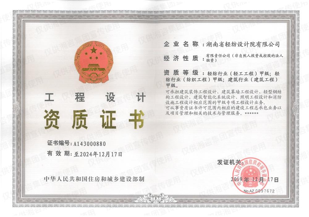 工程設(shè)計資質(zhì)證書-甲級