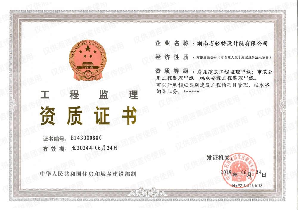 湖南省環(huán)境監(jiān)理證書(甲級資信單位)