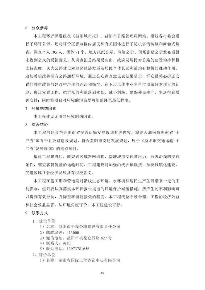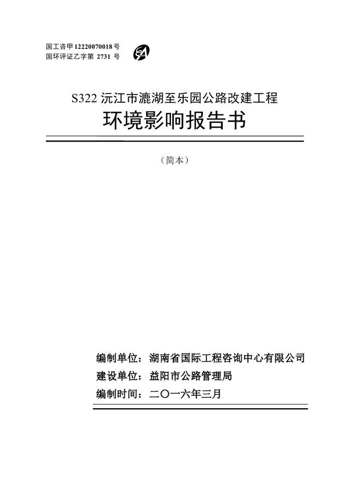 S322沅江市漉湖至樂園公路改建工程環(huán)境影響報(bào)告書(簡本)