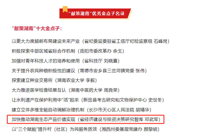 “獻策湖南”金點子征集活動是省委安排部署、省委社會工作部牽頭負責(zé)的一項人民建議征集工作?!跋孀杉瘓F”作為省級“智囊團”積極參與、踴躍獻策,撰寫的《加快推動湖南生······